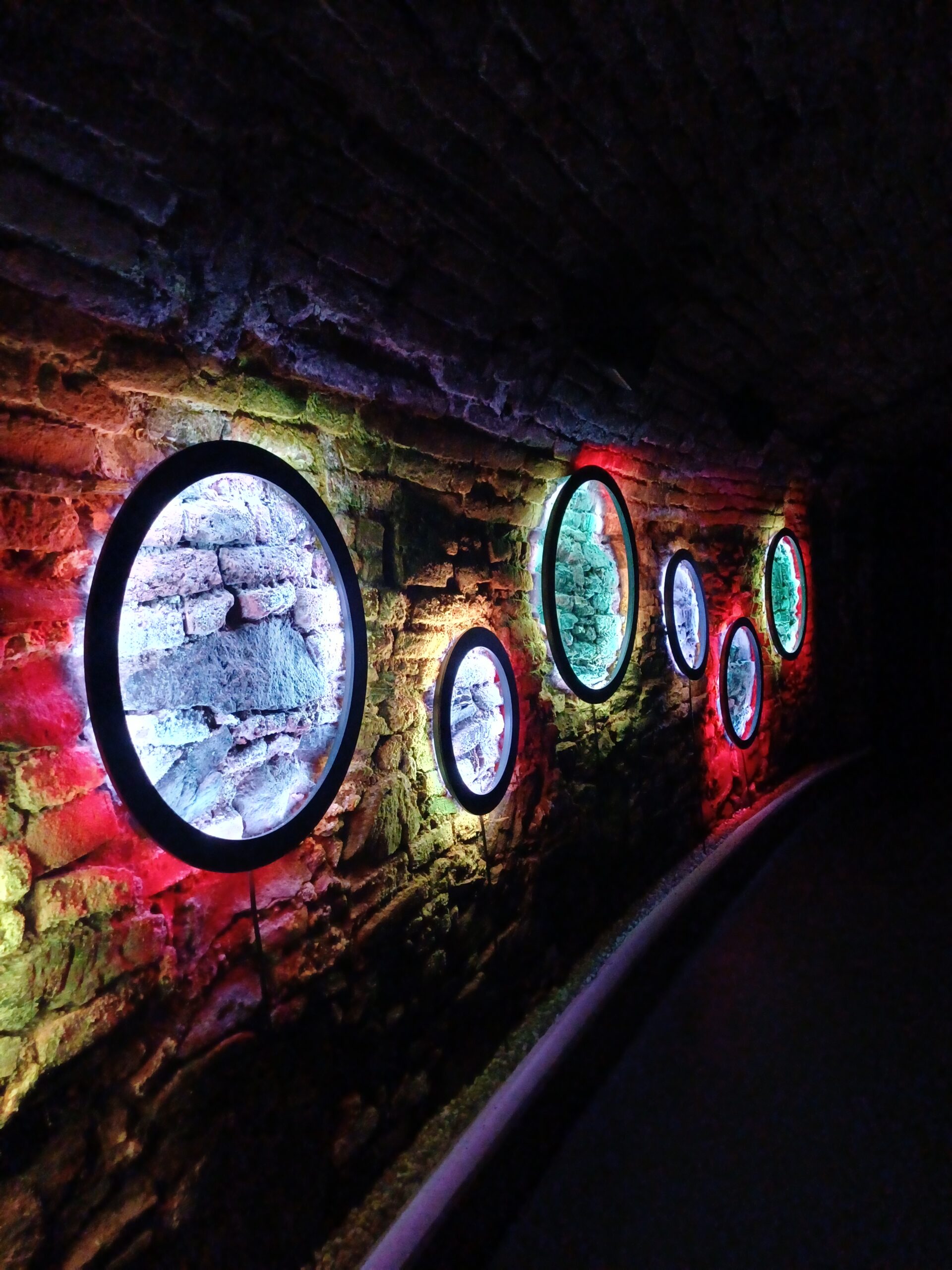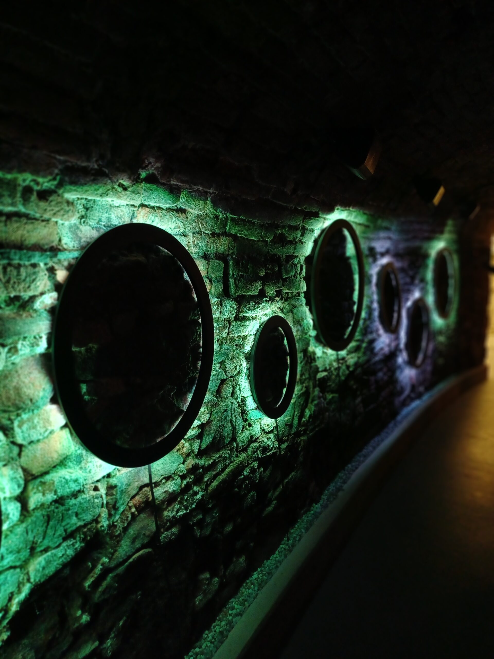 3 Schüler und ein Betreuer in einem Weinkeller.